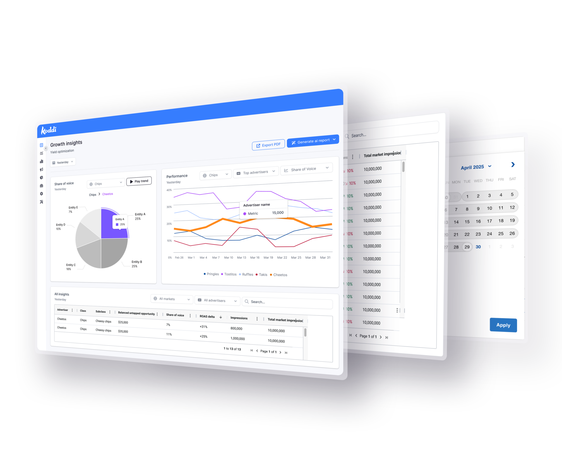 Built for publishers, network operators, and sales teams, Koddi’s Growth insights, part of our Analytics Suite, turns complex marketplace data into clear, actionable intelligence. It reveals where yield is being left on the table, where competition can expand, and where the next sales opportunity is waiting.