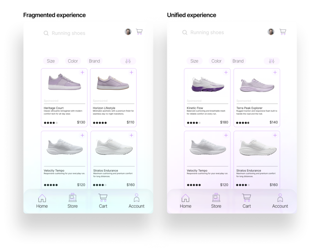 The result is a fragmented experience where organic and sponsored products are evaluated using different criteria, even though they’re competing for the same shopper’s attention. When that alignment breaks down, relevance suffers: click-through rates fall, advertiser performance declines, and retailers lose out on both conversion and monetization. Viewed side-by-side, the difference becomes clearer.