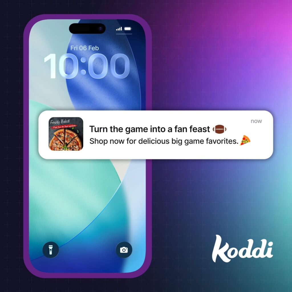 Koddi designed Sponsored Push to operate within a defined flight window (e.g., “week of 1/27/25”), giving advertisers a promotional moment to lean into. These can be especially key moments: during the Super Bowl, before Valentines Day, or any other time where consumers might be more inclined to act on a notification. Delivery of these Sponsored Push notifications is governed by device-level system logic, meaning users receive notifications when they’re most likely to engage.